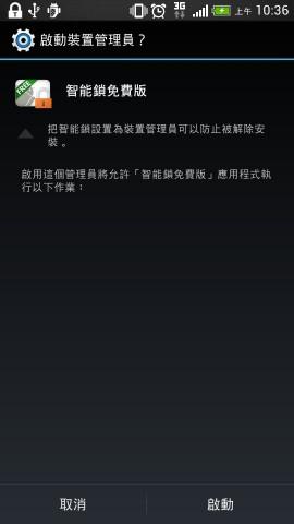 系統(tǒng)里可以選擇講智能鎖設(shè)定成拒絕移除的程式,也可以將智能鎖設(shè)置成為裝置管理員,讓智能鎖有更高的權(quán)限,也可以避免被有心人移除。